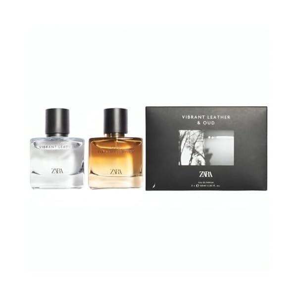 Zara Vibrant Leather and Oud Vibrant Leather Cologne for Men EDP Eau De Parfum Fragrance Set 2x 60 ML (2.03 FL. OZ)