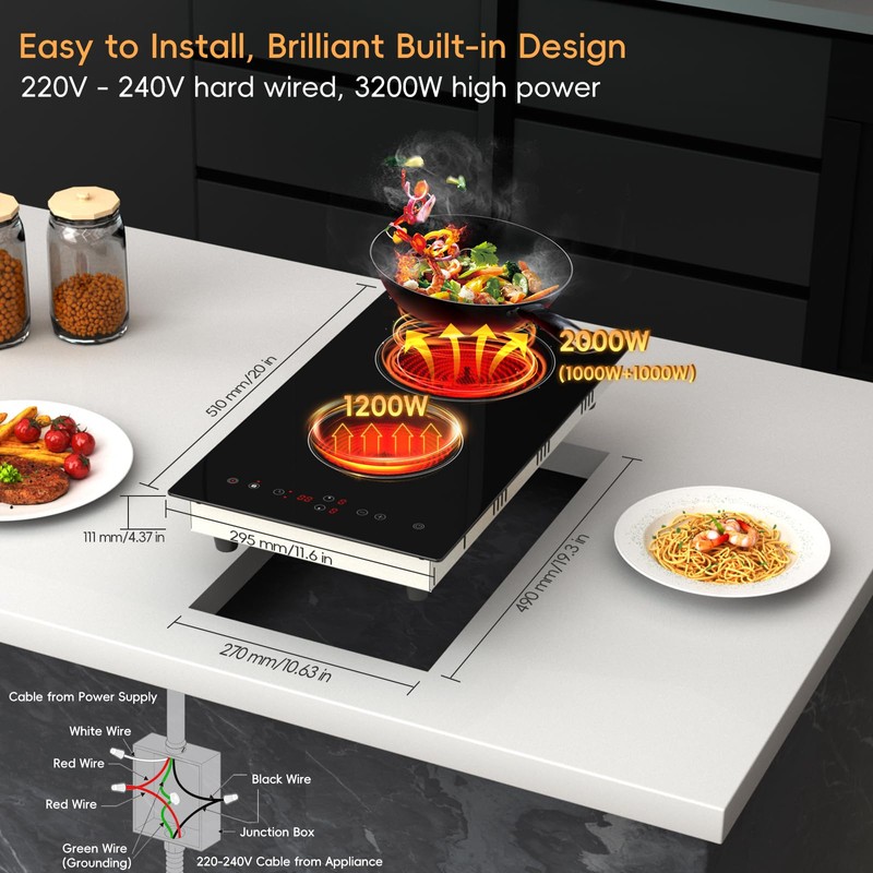 - [Elegant Appearance - A Stylish Addition to Your Kitchen]: Boasting a sleek black smooth mirror ceramic glass surface, Zarbaco Electric Hob adds a touch of elegance to your kitchen. The built-in design saves kitchen space, requiring only a 19.3 inch * 10.6 inch built-in Cut-out for installation.