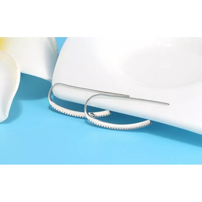 ZARD Cubic Zirconia Curved Bar Hook Threader Earrings in Sterling Silver Plate
