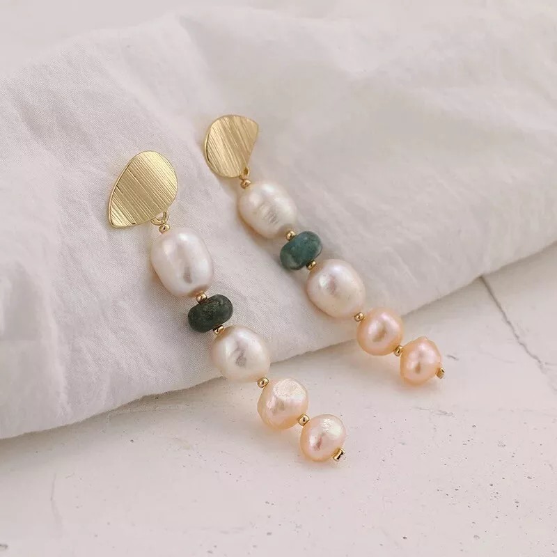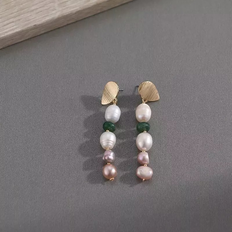 ZARD Cultured Multi-Color Baroque Pearl and Green Quartz Linear Drop Earrings