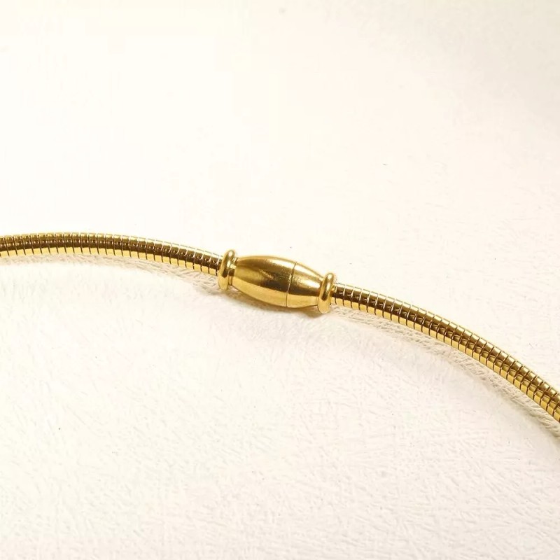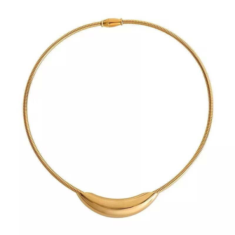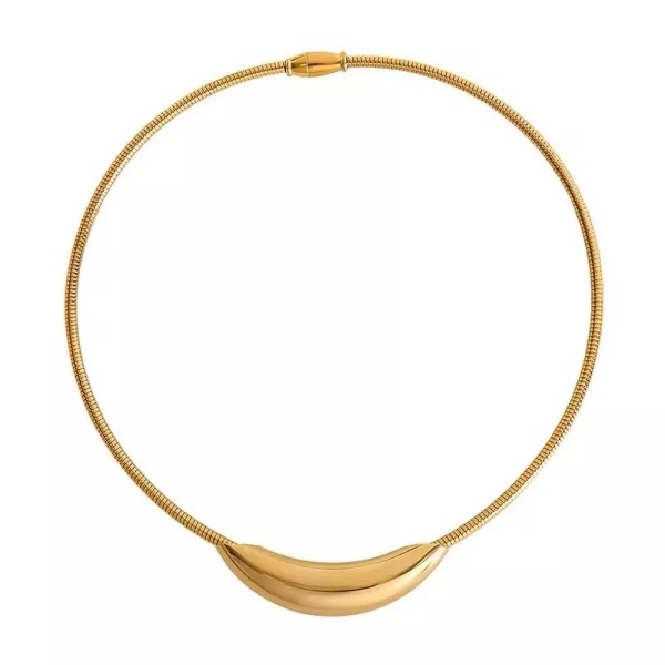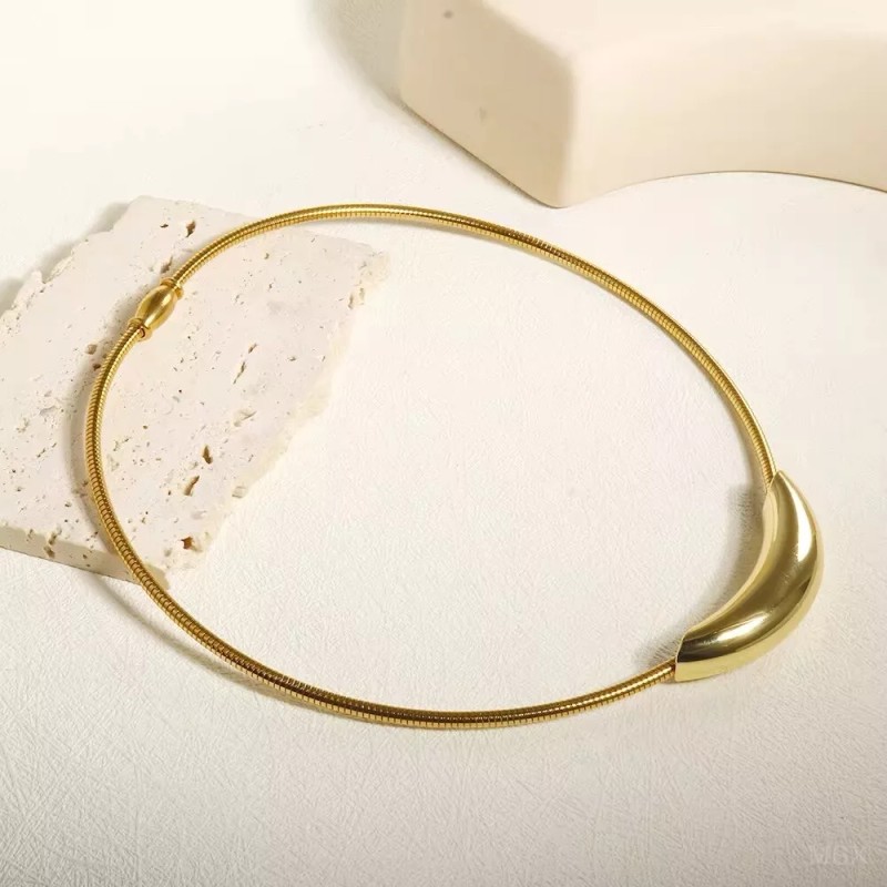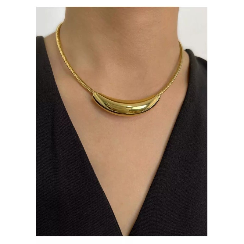 ZARD Curved Tube Charm Snake Chain Collar Necklace In 14K Gold Plating