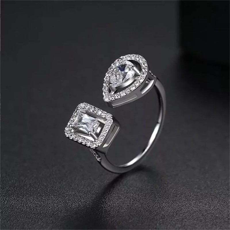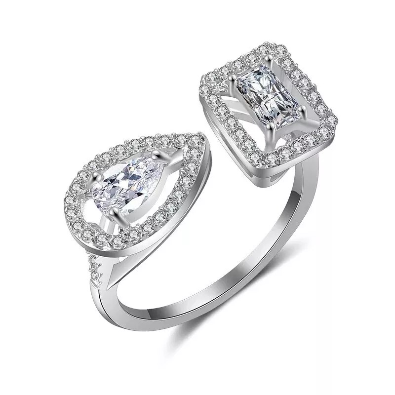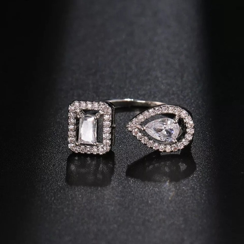 ZARD Pear and Emerald Cut Cubic Zirconia Open Ring in Platinum Plating