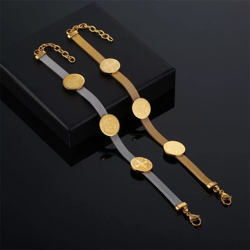ZARD San Benito Cross Charm Mesh Bracelet in Italian 18K Gold Saint Benedict