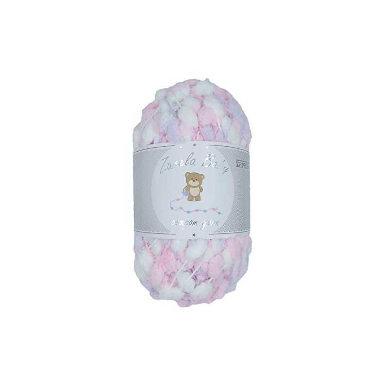 Zarela Baby Pom Pom Yarn Wool (12 White-Pink-Lilac)