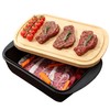 - A BBQ Must Have – Two-piece premium set includes deep tray and lid/cutting board. Prepping and grilling meat is safer and easier with our two-piece marinade tray, specially designed to prevent contamination between raw and cooked food. Place raw meat or vegetables in the deep tray to marinate, and use the wood top as both a lid and a cutting board.
