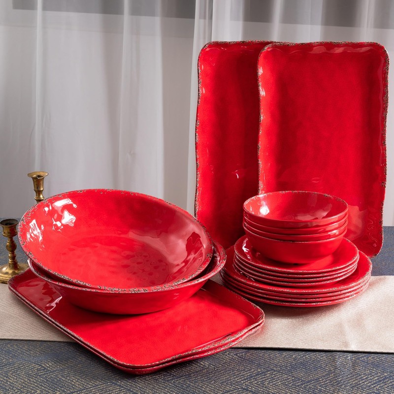 ZAROCRUS Melamine Serving Platters, set of 2, 17" x 10" Large Reusable BPA Free Rectangular Party Tray/Platters for Serving Appetizers, Fruits On Christmas and all Occasions,Red