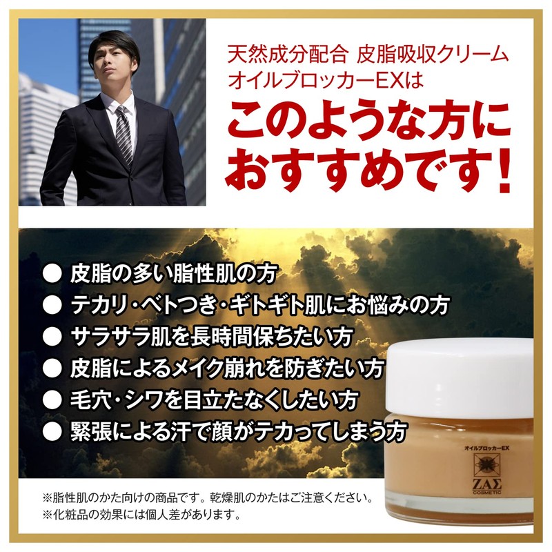 ザスコスメティック ザス ZAS オイルブロッカーEX 20g 皮脂吸収クリーム テカリ防止 皮脂 崩れ 汗 抑える 毛穴 小じわ 隠し 化粧下地 ファンデーション メンズメイク メンズコスメ 男性化粧品 メンズ 化粧品 うすだいだい 無香料