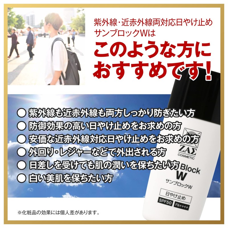 - Titanium oxide firmly blocks near infrared rays, and has a high level of protection against SPF 50, PA++++