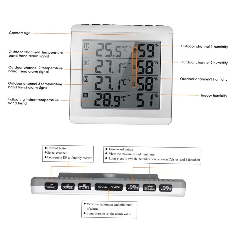 - 【Fortschrittliche Technologie】 – Mit modernsten Systemen ermöglichen Ihnen unsere Hygrometer, drei Außentemperatur- und Luftfeuchtigkeitswerte direkt von Ihrem Innenempfänger zu erhalten.