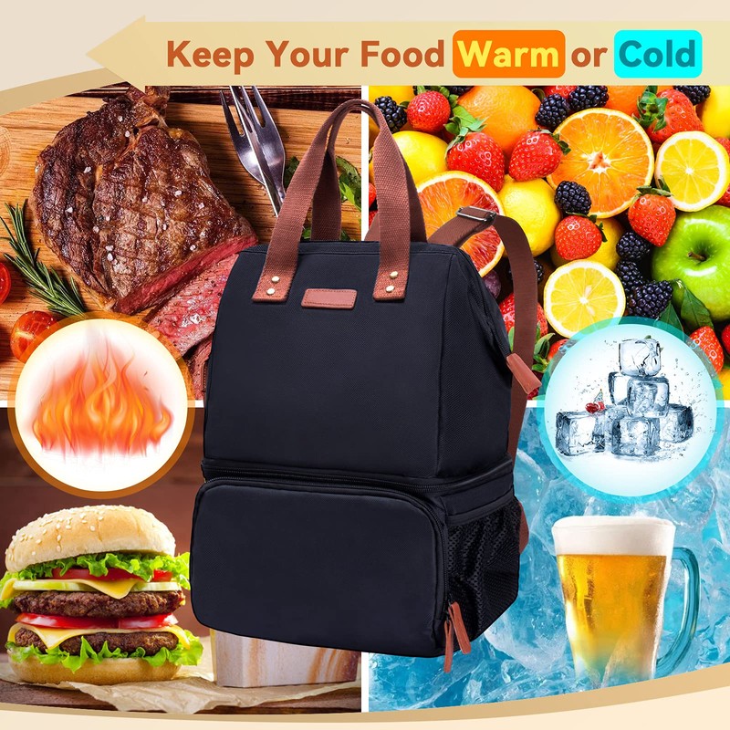 - 【Convenient & Portable Design】- This lunch bag has a wide opening for easy loading and unloading; Designed with a padded handle and shoulder straps to offer multiple carrying options. Also, padded mesh shoulder straps and back panel provide comfort while carrying a lot of items while maintaining excellent ventilation. Can be used as a backpack or handbag to meet different occasion needs.
