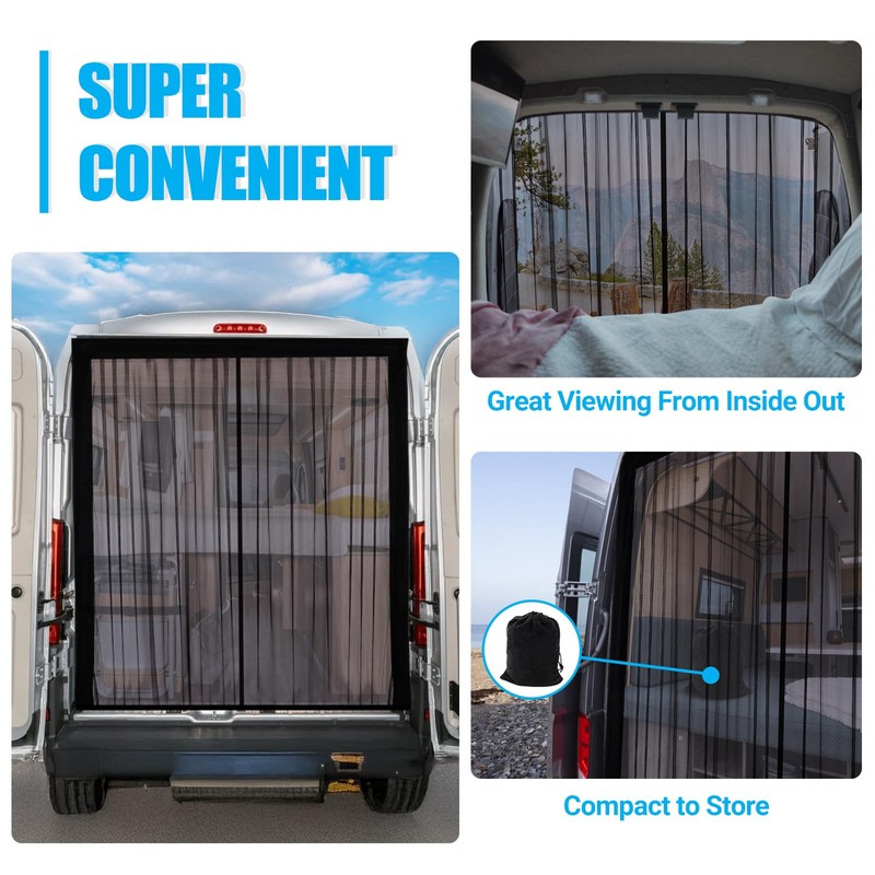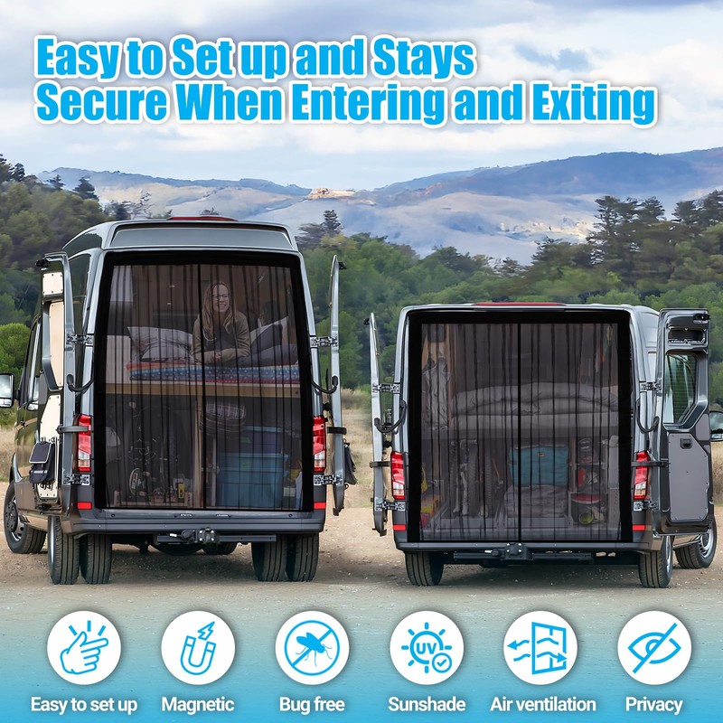 - Protection & Ventilation: The Van Bug Screen is made of encrypted mesh, which keeps out mosquitoes and insects, while allowing breezes and air currents to enter, making it ideal for camping, outdoor activities, and resting in the car