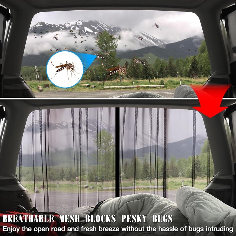 - ALL-AROUND PEST PROTECTION, ENJOY NATURE The high-density mesh effectively blocks insects while ensuring airflow, allowing you to enjoy fresh air and the outdoors comfortably. Whether it's the hot summer or rainy season, the van bug screen provides perfect insect protection, offering a healthier and fresher environment inside your vehicle