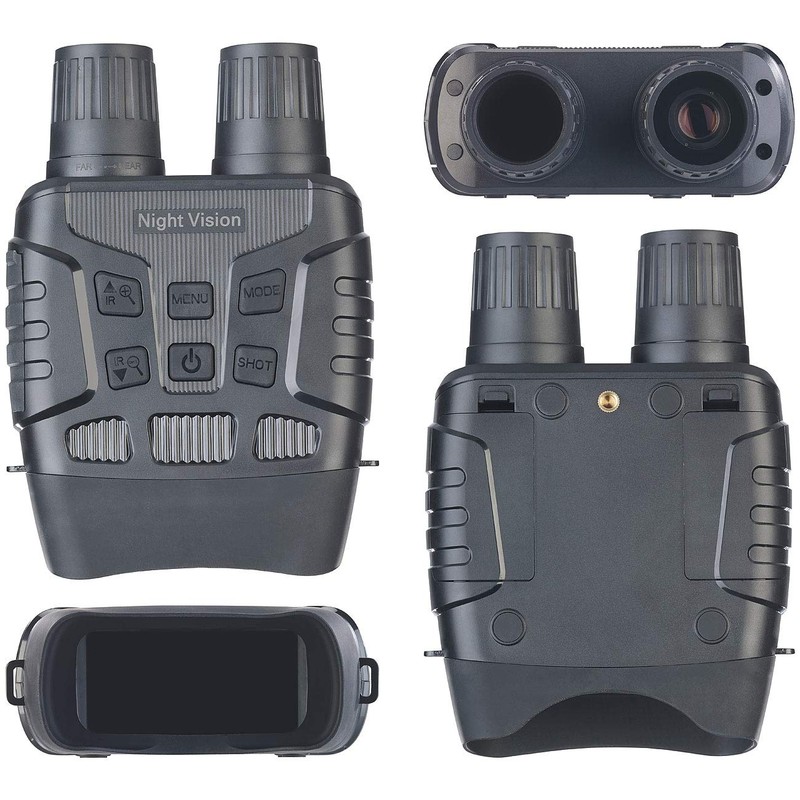 • Infrared night vision with up to 700 metres range, large binocular LCD viewfinder, resolution: 960 x 240 pixels, with adjustable backlight, lens viewing angle: 10°, aperture: f/1.2, slot for microSD (HC) cards up to 32 GB (not included), removable neck strap for comfortable carrying.