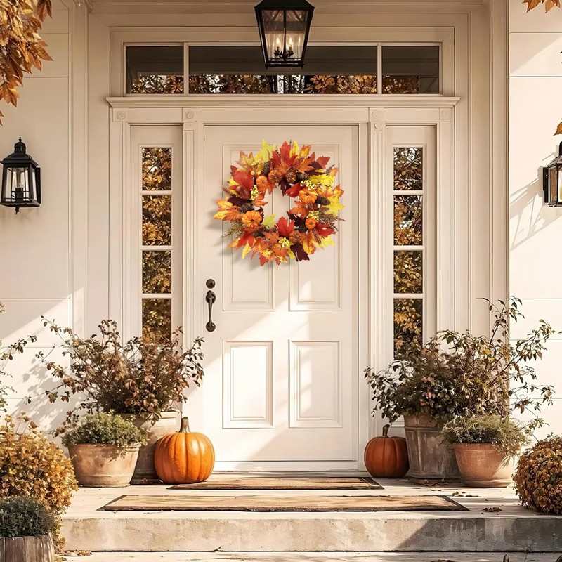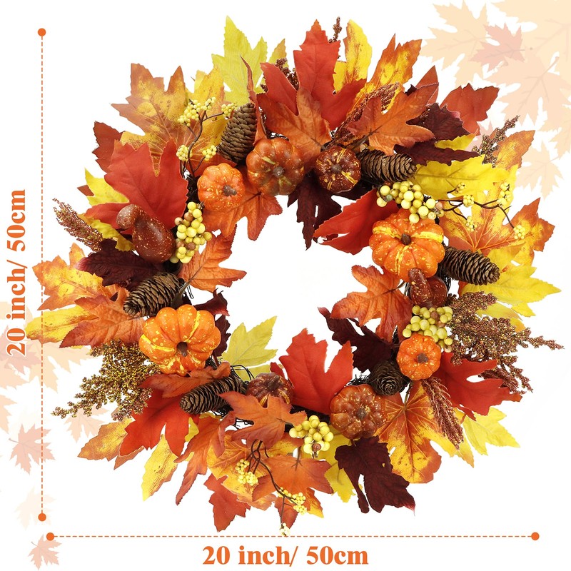 - Suitable for indoor and outdoor decoration: the autumn wreath will give your autumn-proof touch. Use this beautiful winter or autumn stone for autumn festival, winter and Thanksgiving as a Christmas decoration in your home or outdoors.