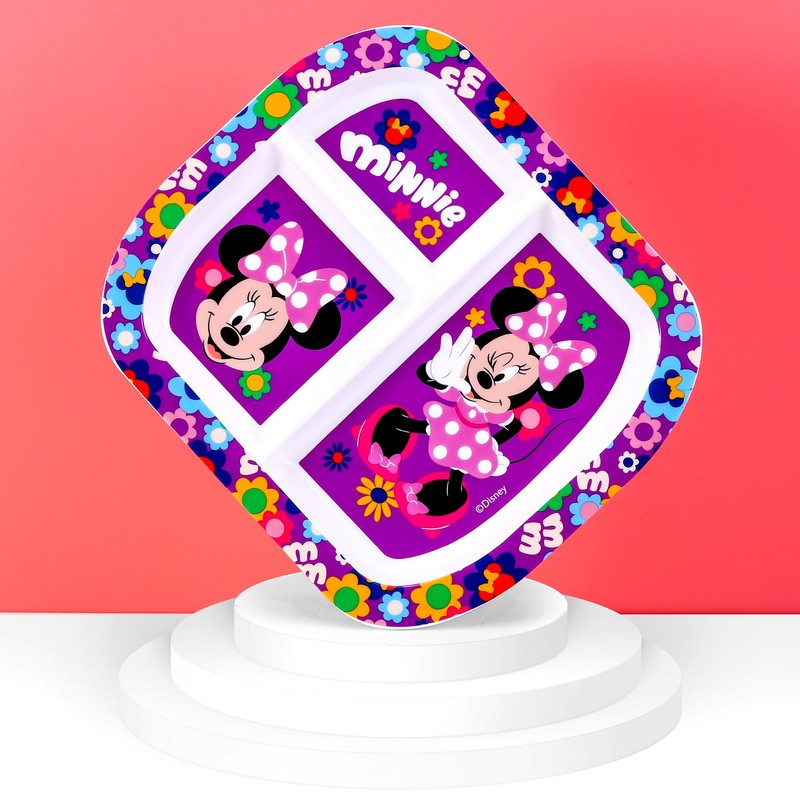 Zawadi Global Minnie Mouse 3 Section Reusable Childrens Kids Toddlers Divided Breakfast Lunch Dinner Plate