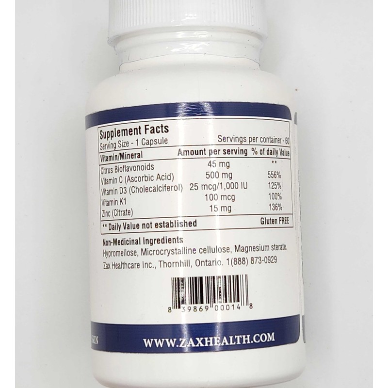 ZAX'S ORIGINAL Bruise Care Supplements - Pharmacist Developed Formula with Zinc, Vitamin K, D3, Ascorbic Acid, and Citrus Bioflavonoids - 60 Capsules, 2 Pack