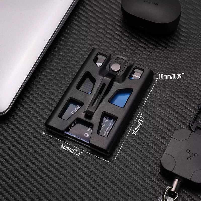 - SECURE CARD HOLDING SYSTEM - It can hold 1 to 4 cards, and all of your cards load from top of the sturdy rigid case, secured firmly by a metal clip on the side. So it will neither scratch nor lose your cards.