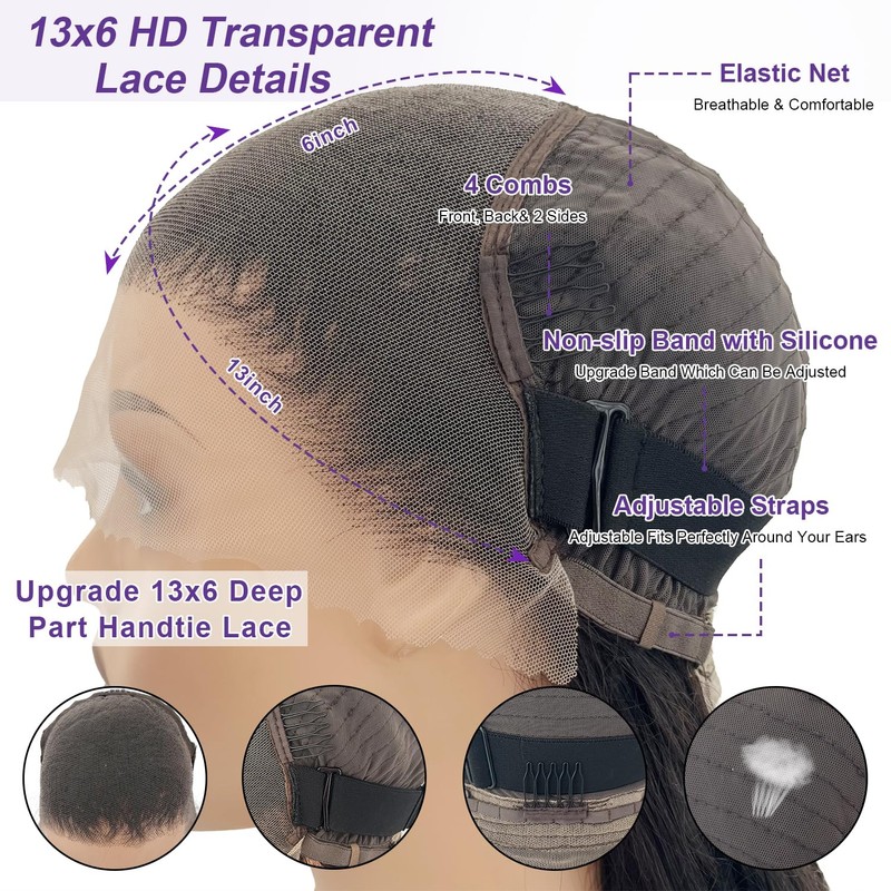 - 【 HD Transparent Lace Upgrade 】13x6 HD Transparent Lace front Wigs, Soft and Breathable Lace, HD Transparent Lace Blends Perfectly into Your Skin, Large Lace Size Can do Middle Part, Side Part, any part possible according yourself and Can do High Ponytail & Bun, Styled as You Like, At The Same Time, that Will Be More Breathable And More Comfortable When you wear