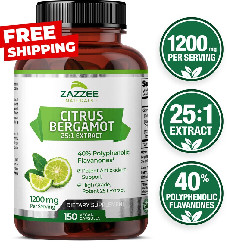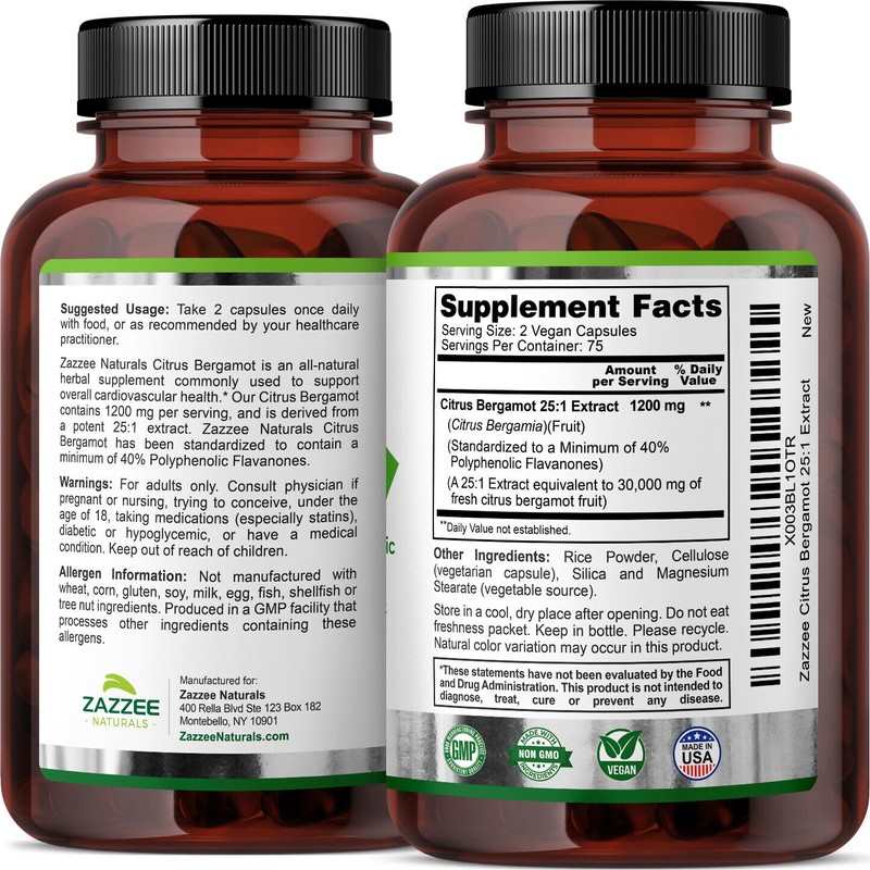 Zazzee Extra Strength Citrus Bergamot 25:1 Extract 1200 mg, 40% Polyphenolic Flavanones