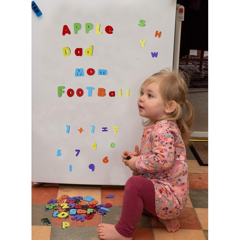 - Magnetic Letters: 26 uppercase letters + 50 lowercase letters (High-frequency letters appear more). Easy for children to play “spelling game” and learn sight words