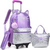 ZBAOGTW Rolling Backpack for Girls 6-8 with Lunch Bag Pencil Case Rolling Casual Cute Cat Backpacks with Wheels for Elementary Students