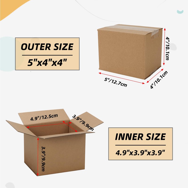 - Size: 5x4x4 inches corrugated boxes, pack of 40, easy to assemble. When you need to pack small things, this size will be your choice.