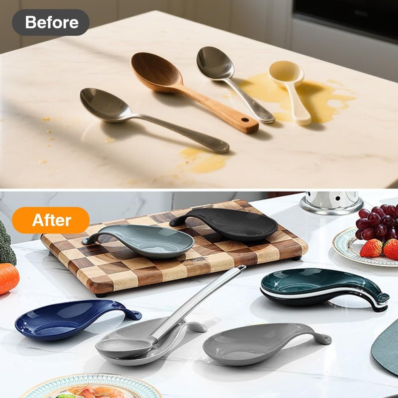 ZBKJYILF 4-Pcs Löffel Rest, Grau, Blau, Grün, Schwarz, Langlebig, Küchenlöffel Halter