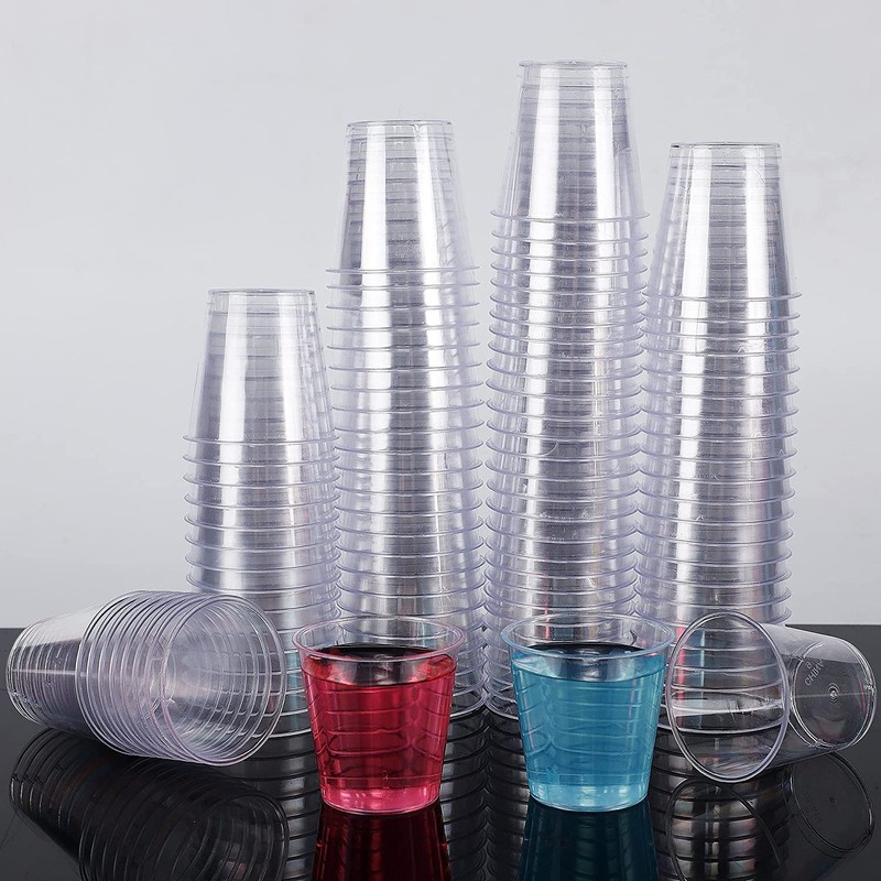 - QUALITY PC MATERIAL: Zcaukya small plastic shot cups are made of premium PC material, sturdy and thick. They are very clear and on lustre of glass, but much lighter in weight. Food grade material without BPA, not easy to break, and recyclable.