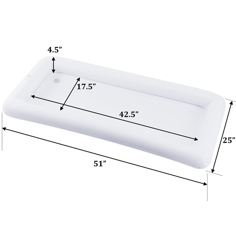 - HUGE AND FOLDABLE SERVING BAR: Inflatable Cooler external dimensions 51"L x 25"W and 4.5"H, internal dimensions 42.5"L x 17.5"W. It is spacious enough, so serving bar can hold multiple bowls, cutlery, drinks and cans.