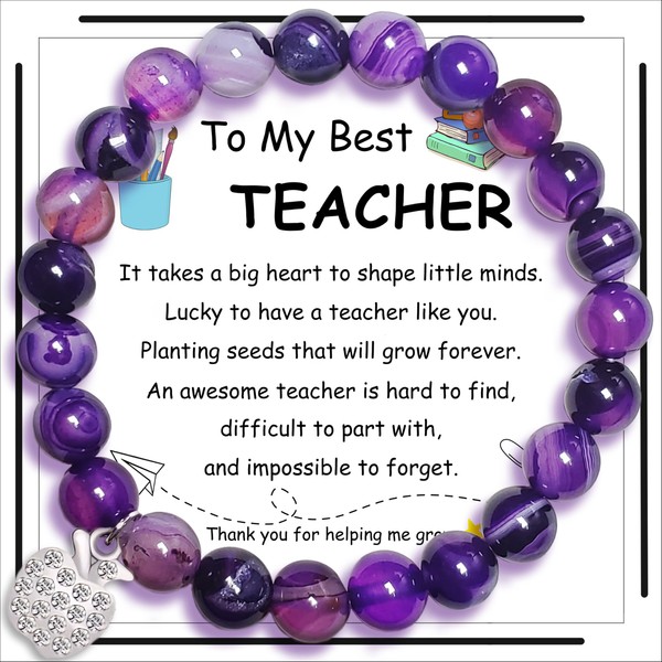 ZCCLINN Teacher Appreciation Gifts for Women - Purple Thank You Natural Stone Bracelet Ideas with Message Card, Happy Teacher Appreciation Week Unique End of Year Birthday Jewelry Present from Student