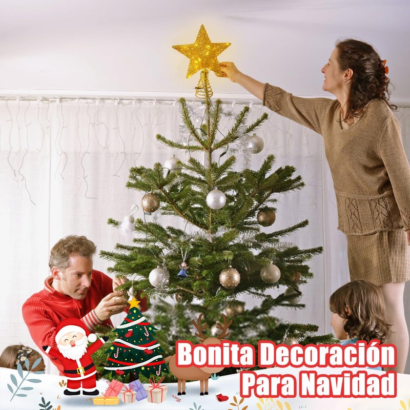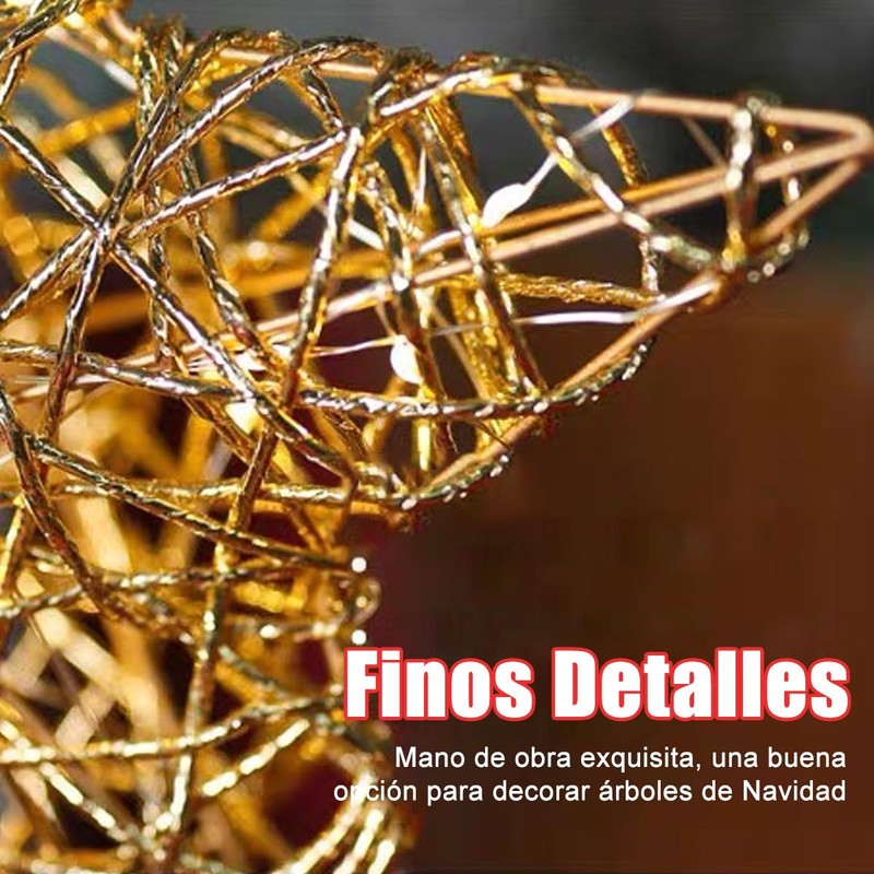 - 【Diseño único y Revestimiento de Purpurina】La forma de las estrellas doradas del adorno del árbol de Navidad es muy retro y tradicional. Presenta un diseño de alambre de metal hueco. La estrella del árbol tiene muchas lentejuelas brillantes en su superficie. Brilla y enciende las luces por la noche, brindando un ambiente cálido y festivo, agregando efectos visuales deslumbrantes a tu fiesta de Navidad y agregando un toque elegante a tu árbol de Navidad.
