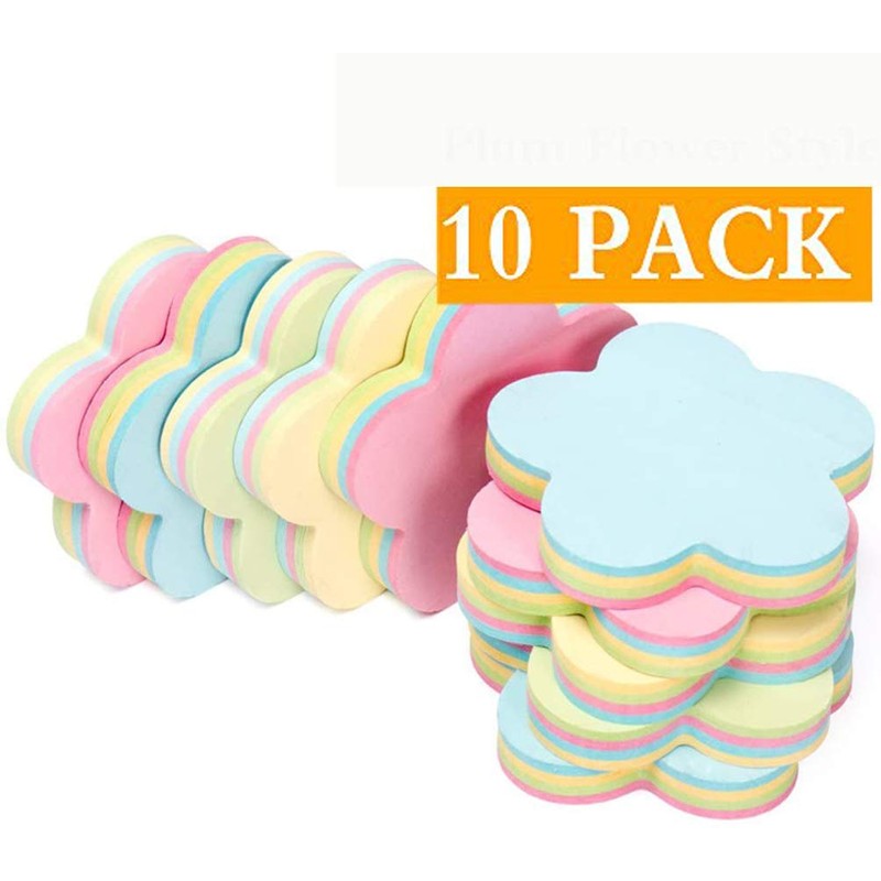 ZCHING Sticky Notes Self-Sticky Notes,100 Sheets/Pad, 10Pads/Pack in Box,Easy to Post for School, Business, Family,Great Office Supplies (Flower Shape)
