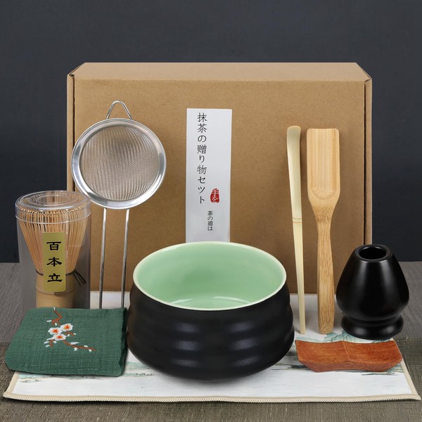 - 【Complete Matcha Tea Set】This 10-piece set provides a comprehensive tea experience, including a bowl, whisk, whisk holder, sifter, scoop, towel, mat, stirrer, plucker and plucking rack. Perfect choice for matcha tea enthusiasts.