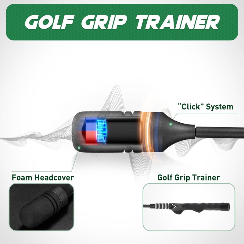- Features - Thanks to its 28-inch length, you can use this trainer indoors without worrying about hitting the ceiling. Just make sure the space is clear and free of obstructions before you start. The ergonomic golf grip trainer helps you master the correct grip. There's no need for golf mats or complicated golf equipment. You can practice your swing anytime, anywhere—whether at the office or at home. It’s the perfect golf accessory!