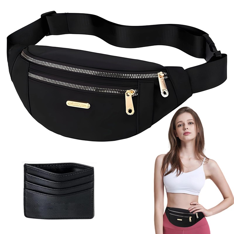 - Versatile Design: The black bumbag features a dual zipper design for easy access and secure storage; Its compact size makes it ideal for daily commuting and outdoor activities like hiking and running; The included card pouch adds extra convenience for organizing essentials.