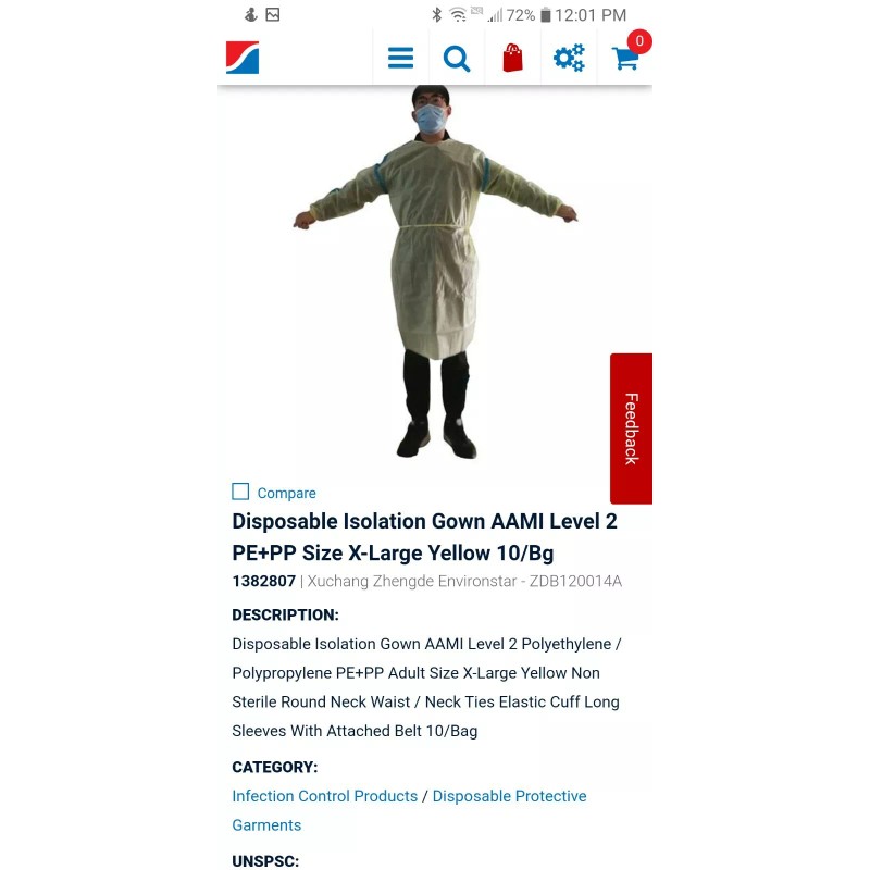 PPE Disposable Protective Isolation Gown AAMI 2 Yellow Pack of 10 New sealed in package. (Purchase is 2 packages 20 gowns total.)