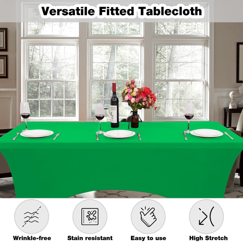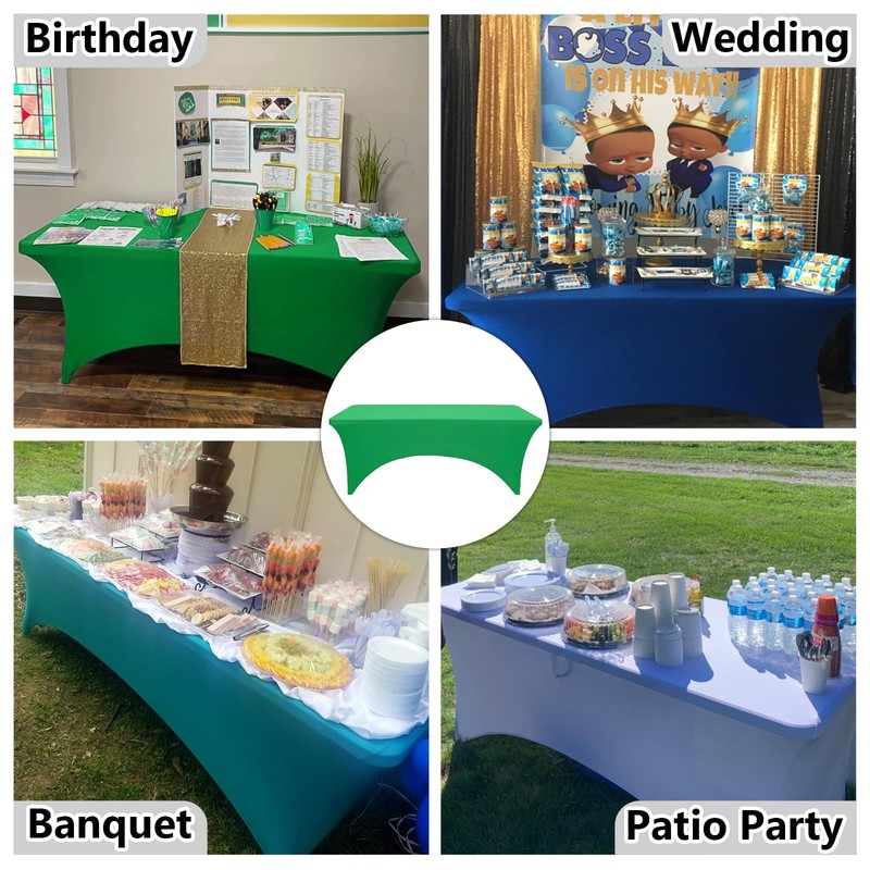 - 【Reusable Tablecloth】 :These 6ft green stretch table cover feature stain resistant and wrinkle resistant properties that make them a perfect choice for indoor and outdoor events. They protect your tables from dirt, dust and scratches.