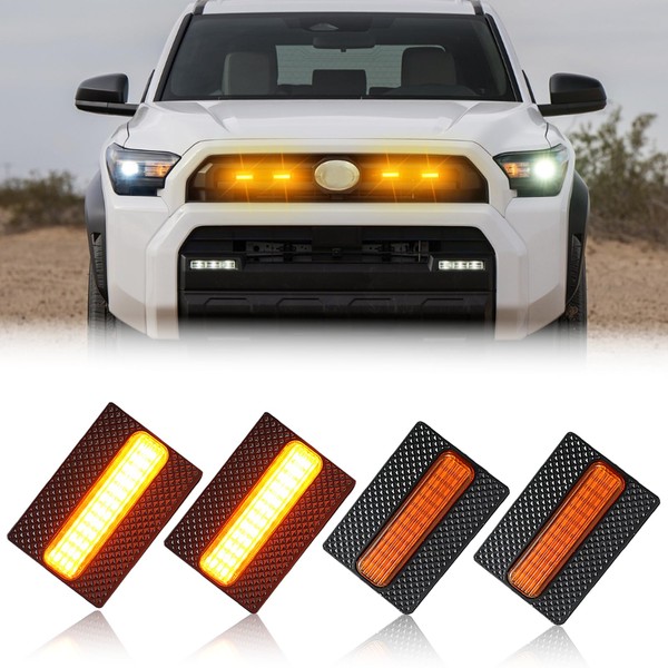 ZDEERAOTO 4pc Smoked Housing Amber LED Front Centra Grille Lights DRL Feature Kit for Toyota 4runner 2025 SR5,OEM Grill Led Grill Light For 4Runner Accessories(YELLOW)