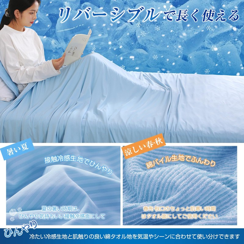 - (Reversible specifications, cooling sensation and cotton terry fabric) The outer material uses cool and comfortable contact material that is soft to the touch. The lining is made of cotton terry cloth with excellent moisture absorption. The fabric feels cool to the touch during hot months and keeps you cool and cool. Feel cooler in rooms with air-conditioned air conditioning. The cotton pile fabric is smooth and soft to the touch during the chilly season, and it will keep you warm. The pile fabric has excellent sweat absorption, so it absorbs firmly even if you sweat. Tightly sewn to ensure a perfect finish and double sided fabric to prevent slipping