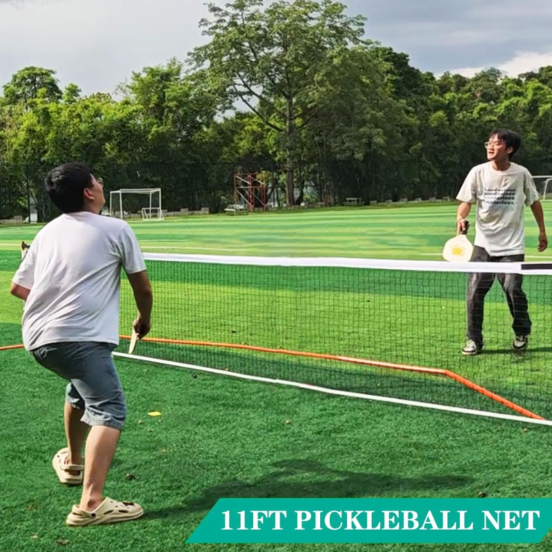 - -[22FT and 11FT 2-in-1 Pickleball net 】This portable pickleball net is equipped with two nets, one 22FTx36 inch net that meets the official regulations, and an 11FT wide half-court practice net to meet your different needs, you can quickly make up the net into a 22FT inch or 11FT net according to your own needs, both sizes are designed to meet your needs. , suitable for backyard, beach, driveway or any flat area. You can enjoy the game with your family and friends