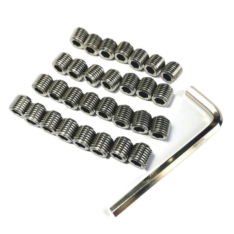 - 3. [30pcs 3/8-24 SET SCREWS + 1PCS Allen WRENCH]-----Package includes 30pcs allen head socket set screws & 1 bonus corresponding hex drive key:3/16" allen wrench, offering ease of use by hand. Fixing screws: headless screws that are flush with or below the surface after installation. The internal socket driver needs to use an Allen key (hex wrench) to install.