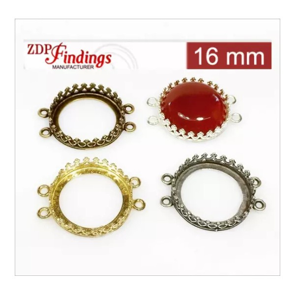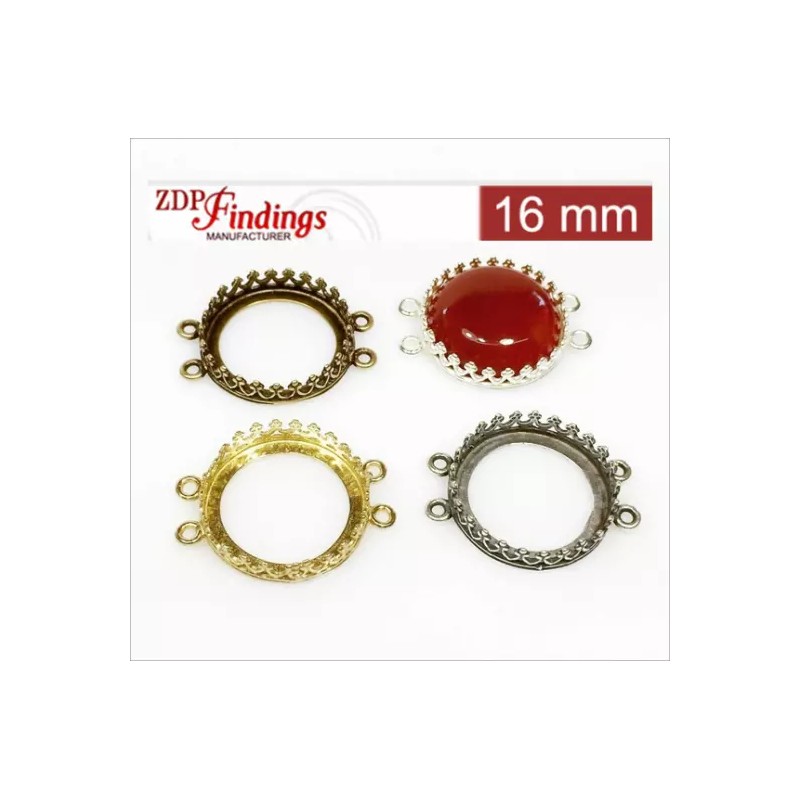 ZDP Findings - 6pcs - Round (16mm) Antique Silver Crown Bezel Setting 8699ASP