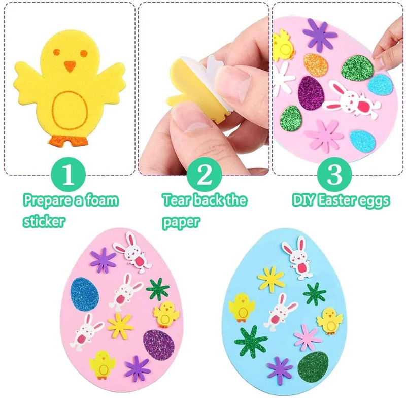 - High-quality materials: our Easter crafts are made of high-quality EVA foam, which is lightweight, soft, odourless, colourfast and child-friendly and has a self-adhesive back. No specific steps. You can make as many as you want! You will find that you can make vibrant and cute Easter eggs, Easter bunnies and chicks!