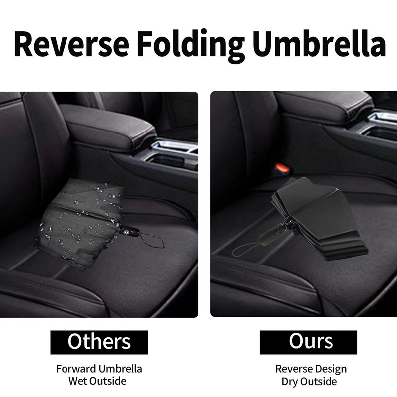 - Reverse Design: This umbrella is different from regular folding umbrellas. Keeping the wet surface inside and prevents water from dripping and keeping floors and cars dry when close it. Convenient for you to get in/out car.