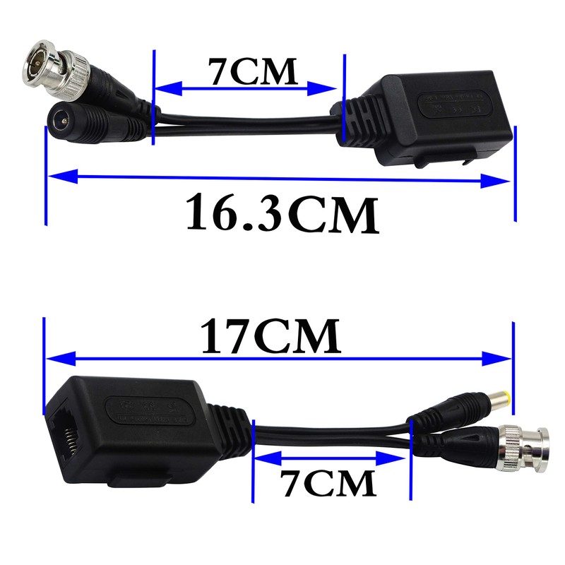 - Size:(16.3CM) and (17CM) Colour:(black) Package Quantity:(2 PAIRS) Material:plastic+metal Features: Balun HD cat5 female to BNC male video baluns+DC 5.5 x 2.1mm female /male jack adapter cable