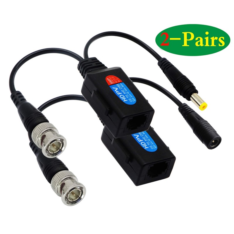 zdyCGTime Balun HD Cat5 RJ45 to BNC Video Baluns transceiver Passive with Power Connector for 720P 1080P 3MP 4MP 5MP HD-CVI/TVI/AHD/CVBS/960H Camera(2 Pairs)