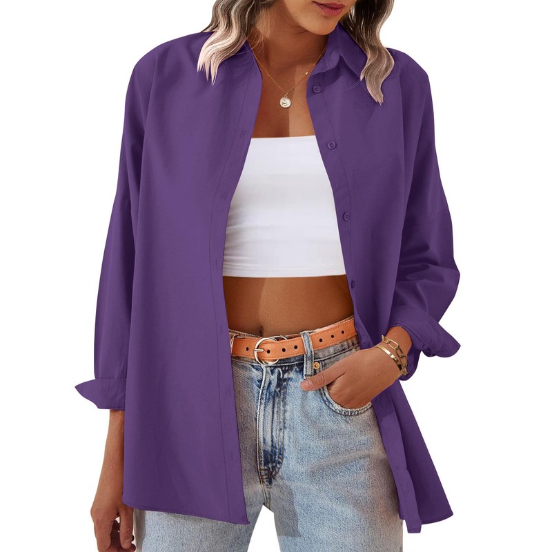 Zeagoo Oversized Button Up Shirts for Women Casual Collar Tops Loose Button Down Long Sleeve Blouse Spring XL Purple
