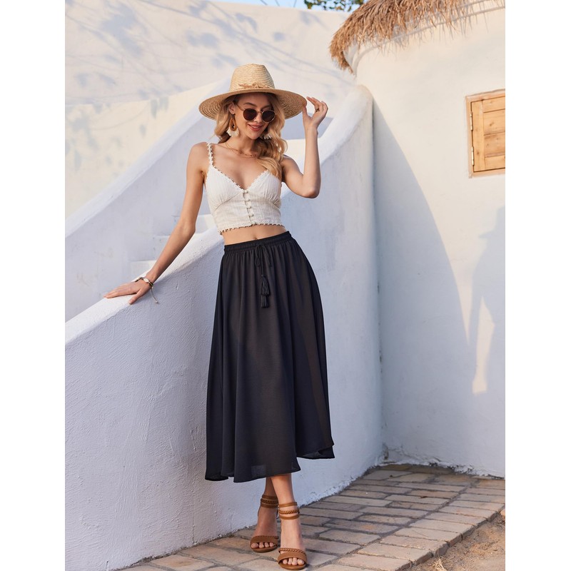 - Occasion: fashionable, elegant, casual, perfect for office and everyday life, holidays, beach, dating, wedding, party, etc. Whether urban with comfortable shoes and a T-shirt or elegant at a party with a blouse, every occasion has arrived well with this skirt. It is an indispensable midi skirt in your spring and summer wardrobe.