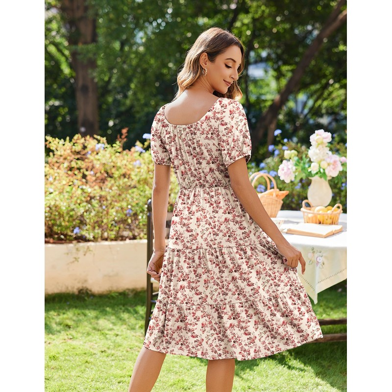 - 【Feature】: Womens 2025 summer dress/Women's tiered ruffle dress/puff sleeve midi dress/ Short Sleeves dress/ Ruffle Hem dresses/ Square neck dresses/Knee Length Dress/ Loose fit dress/Solid floral dress.