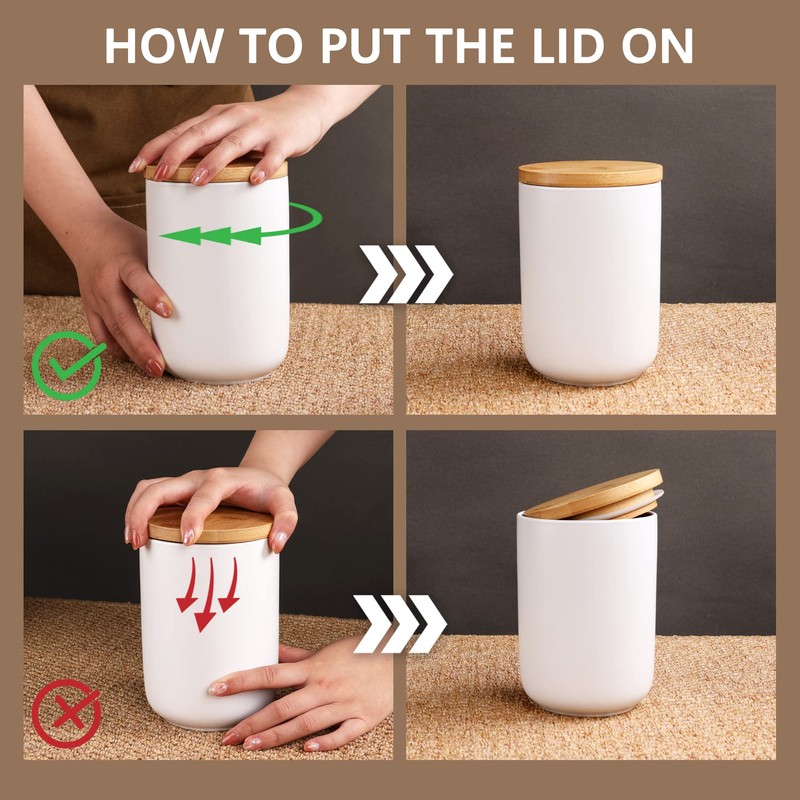 - 【Easy Clean-up】The surface of the ceramic food canisters for kitchen countertop are smooth, making them easy to clean. Both the canisters are safe for use in the microwave and dishwasher. BUT, the bamboo lids should be hand washed only.